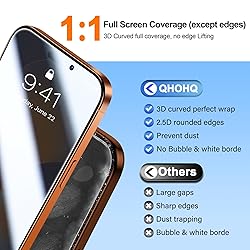 QHOHQ 3 Piezas Protector Pantalla Privacidad para iPhone 17 Pro Max + 1 Juego Protector Camara, 25° Cristal Templado Antiespia, [12 Pies Militar Anti-Impactos], Auto-Instalación 1s, Funda Compatible