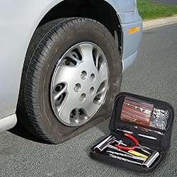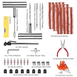 QUNNIE Juego de reparación de neumáticos, 48 Piezas, Herramientas universales de reparación de neumáticos para reparación de pinchazos y Conectores, Herramientas de reparación para Coche, Moto,