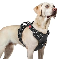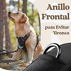 rabbitgoo Arnes Perro Mediano con 3 Hebillas, Liberacion del Cuello, Arnes Perro Ajustable con Asa y Clip Frontal, Arnés Antitirones para Perros Reflectante para Adiestramiento Correr, Negro, L
