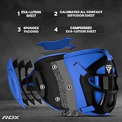 El casco de boxeo RDX está fabricado con cuero Maya Hide para una mayor durabilidad y resistencia. Diseñado con múltiples capas de acolchado para una máxima absorción de impactos y una rejilla de PVC extraíble para proteger la cara, la nariz y los ojos de los golpes poderosos, es el casco más avanzado en el ring. Este casco de boxeo para hombre viene con un sistema de cierre de gancho y bucle para mantenerlo en su sitio durante los combates, mientras que la correa ajustable de la barbilla del casco de entrenamiento ofrece un ajuste personalizado para que puedas permanecer concentrado durante tus sesiones de entrenamiento. La parte superior abierta y las orejeras abiertas del casco de boxeo permiten el flujo de aire para la ventilación y reducen al mínimo la acumulación de sudor a través del forro interior de secado rápido.