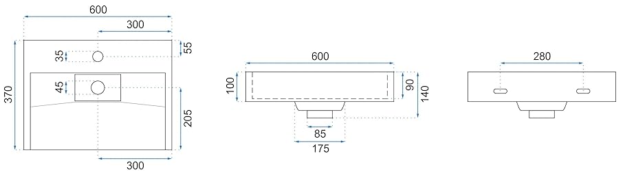 Te presentamos un bonito lavabo sumamente funcional y moderno. Es un producto que llenará perfectamente el espacio de tu baño manteniendo el impecable aspecto y estética del interior. El lavabo está fabricado de aglomerado blanco como la nieve de alta calidad. El lavabo se puede colgar o montar directamente sobre la encimera.Conglomerado – Perfect Surface es el material con el que está fabricado el lavabo Goya. Se caracteriza por una durabilidad excepcional, contra daños mecánicos, rayones o incluso altas temperaturas.La mano de obra sólida y cuidadosa garantizará un uso cómodo y seguro. Además de su excelente durabilidad, el conglomerado, a pesar de su color blanco níveo, es muy fácil de limpiar.Los lavabos de conglomerado también son una elección sencilla para personas que aprecian estética y sencillez al mismo tiempo. Estilo moderno y alta durabilidad son las principales características de este material.Parámetros técnicos:Método de montaje: Suspendido, Sobre encimeraProfundidad del lavabo : 90 mmMaterial: ConglomeradoAltura lavabo: 140 mmOrificio grifo: SíLargo lavabo: 600 mmAbertura de rebosadero: NoAncho del lavabo: 370 mmDiámetro del orificio de desagüe: 45 mm
