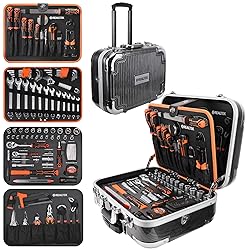 REALTEK Maletín de Herramientas 123 Piezas, Caja de Herramientas Completa, Juego de Herramientas de aluminio con Ruedas, Cromo Vanadio y Acero, para Reparaciones Domésticas y Automotrices