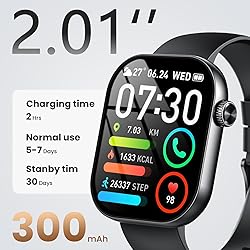 Realiza llamadas directamente desde tu muñeca con este smartwatch de 2.01". Monitoriza tu ritmo cardíaco, sueño y más de 110 deportes, y recibe notificaciones de WhatsApp. Resistente al agua IP68, es tu compañero perfecto para Android e iOS
