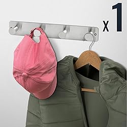 RICOO Perchero de Pared Acero Inoxidable, Modelo MH025S-4, Elegante y Duradero, con 4 Ganchos para Recibidor, Cocina y Baño, Plata