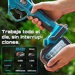La tijera de podar eléctrica SEESII está diseñada para ofrecer una experiencia de poda potente, precisa y sin esfuerzo. Gracias a su motor sin escobillas, corta ramas gruesas de hasta 40 mm como si fueran mantequilla, reduciendo la fatiga en las manos y permitiendo podar cómodamente arbustos o árboles frutales. Equipada con dos baterías de 4.0Ah, proporciona más de 4000 cortes por carga y una autonomía prolongada para jornadas completas de trabajo en el jardín o el huerto. Sus 4 modos de corte ajustables se adaptan a diferentes grosores de rama, ideales para rosas, vides, robles y más. Las cuchillas de acero SK5 ofrecen cortes suaves y duraderos, minimizando el daño a las plantas. Además, la pantalla LED integrada permite ver el estado de la batería y el número de cortes en tiempo real. Ligera, ergonómica y con funciones de seguridad como el modo de reposo automático y el mango antideslizante, esta podadora eléctrica a batería es la herramienta perfecta para profesionales y aficionados del jardín. Incluye todos los accesorios necesarios para empezar a trabajar de inmediato.