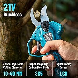 SeeSii Tijeras de Podar Eléctricas, Tijeras de Podar a Batería 4000mAh, Apertura Máxima de la Hoja 40mm, LCD Display, Tesoura de Podadora Electrica Brushless para Jardinería, Árboles Frutales, Viñedos