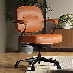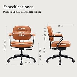 SIHOO L3D - Silla de oficina moderna de mediados de siglo, de piel sintética, ergonómica, silla de computadora con cojín de asiento ancho, reposabrazos acolchado para estudio de tocador del hogar (marrón), tamaño L