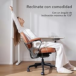 SIHOO L3D Silla de Oficina Moderna - Silla Ergonómica de Mediados de Siglo con Respaldo Alto, Asiento Ancho Acolchado y Reposabrazos Regulables para Hogar, Oficina o Estudio - Marrón