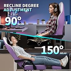 Silla para videojuegos con reposapiés, escritorio de video, ergonómica, silla grande y alta de PC con reposacabezas y soporte lumbar, piel sintética, altura ajustable, silla de oficina giratoria de