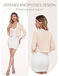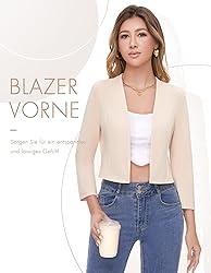 SIMIYA Blazer Blazer - Blazer elegante y corto de manga 3/4 para mujer, corte ajustado, para oficina, trabajo, sin botones