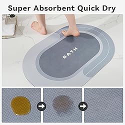 SIXHOME Alfombra de Baño Antideslizante Alfombrilla de baño Lavable a Máquina Súper Absorbente Super Absorbent & Stain Resistant: The non-slip bathroom mat is innovative advanced nanoporous PU leather surface can absorb dripping water instantly without leaving water spots or stains in front of bathtub, shower door or sink to keep bathroom floor clean, dry and safe. Durability: Durable and easy to clean than diatomaceous earth bath mats. No pilling, no fading, no shedding compared to traditional microfiber bath mats. Smooth surface that resists dirt and hair, suitable for families with pets.Such as bathroom, kitchen, sink, living room, conference room, study room, bedroom and so on. Quick Dry Bath Mat: Numerous tiny pores in the bathroom mat ensure water evaporates quickly in the natural air. Usually water stains can disappear within a few minutes without being too wet for the next user. Non-Slip & Leak Proof: The non-slip bath mat with rubber backing provides good slip resistance compared to other TPR or PVC backing. In addition, the rubber bath mat prevents water from seeping underneath and then flowing everywhere. The mat does not smell when wet for a long time. Easy to clean: This bath mat is easy to scrub and clean. Simply wipe the bathroom rugs with a damp cloth or rinse them with a shower nozzle to make your bath mat as good as new. Beautiful and colorful patterns add a beautiful and rich decorative element to your bathroom, available in a wide range of colors and sizes.