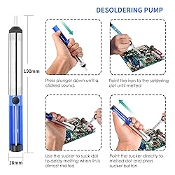SREMTCH Soldador de estaño de 60 W es un accesorio necesario. Dispone de un ajuste de la temperatura que se puede ajustar a una buena temperatura para diferentes proyectos y los 5 puntos intercambiables lo hacen versátil. Especificaciones: Tensión de funcionamiento: CA 220 V/50 Hz. Potencia: 60 W. Longitud del cable: 140 cm. Rango de temperatura: 220 ℃ - 450 ℃. Hace que la soldadura sea más fácil y segura: Calentamiento rápido. Temperatura ajustable. Interruptor de encendido/apagado. Cinco puntos intercambiables para elegir. Buen agarre. El limpiador de bola metálica es insuficiente para garantizar la limpieza de la punta del soldador sin agua y permite mantener la temperatura de la punta. Contenido del paquete: 1 soldador de 60 W. 1 soporte de soldadura (con una esponja). 1 bobina de alambre de estaño. 5 puntos intercambiables. 1 bomba desoldadora. 1 limpiador de bolas metálicas. 1 funda con cremallera.