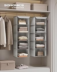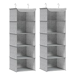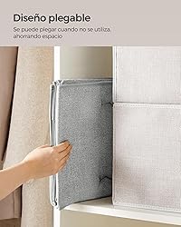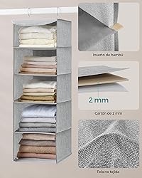 SONGMICS Organizador Armario, Juego de 2, Bolsa Colgante de Armario, Plegable, Ahorro de Espacio, con Ganchos Metálicos, Refuerzo de Bambú, Patrón de Lino, Gris Claro RCH005W02