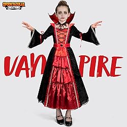 Disfraz de vampiro para niña de Spooktacular Creations, disfraz gótico de vampiro para Halloween, juegos de rol y fiestas de disfraces.Paquete económico: Este disfraz de vampiro incluye un vestido clásico, un cinturón, un collar y dos rayas, lo que le proporciona todo lo necesario para convertirse en una vampiresa deslumbrante. El vestido, el cinturón, el collar y las rayas, con detalles detallados, crean una apariencia impactante y misteriosa que la hará destacar en cualquier evento de Halloween o temático.Calidad: Fabricado con 100 % poliéster y materiales con pruebas de seguridad, este vestido gótico de vampiro ofrece durabilidad, comodidad y un aspecto encantador, garantizando una experiencia segura y divertida para tu hija.Ocasiones especiales: Ideal para disfraces de Halloween, fiestas de disfraces, eventos nocturnos de Halloween, fiestas de cosplay, fiestas temáticas, representaciones teatrales y juegos de rol, este disfraz de vampiro será todo un éxito. Deja que tu niña desate su vampiresa interior y domine la noche con elegancia y encanto.Instrucciones de cuidado: Para mantener tu atuendo limpio y fresco, recomendamos limpiarlo con esponja o lavarlo a mano. No usar blanqueador, secadora ni planchar.Ajuste: Viste a tu niña con nuestro disfraz clásico de vampiresa negro y rojo para un look gótico y de reina. Nuestro disfraz de vampiresa gótica está diseñado para niñas y está disponible en cuatro tallas (Pequeña (5-7 años), Mediana (8-10 años), Grande (10-12 años) y Extra Grande (12-14 años)), que es adecuado para niñas de diferentes edades y garantiza un ajuste perfecto. Consulta la tabla de tallas para obtener las medidas exactas.