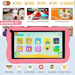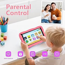 SUMTAB Newest Tablet Niños 7 Pulgadas, Android Tablet,8GB RAM 64GB ROM (mpliable 256 GB), GMS Certified, Pantalla IPS HD, Control Parental, Tableta educativa para niños con Funda EV(Rosa)
