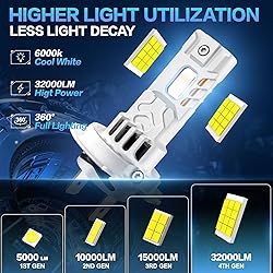 【Luminosidad Excepcional +150%】 Disfrute de una luz hasta un 150% más brillante que las bombillas LED H7 estándar. Con un flujo luminoso de 32.000 lúmenes y una temperatura de color de 6.500 K, nuestra tecnología LED ofrece una luz blanca pura, similar a la luz natural. Esto reduce eficazmente la fatiga visual y mejora radicalmente la claridad y la seguridad al conducir de noche.
