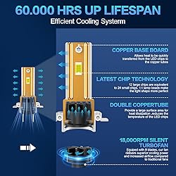 Sycreek Doble Radiador de Cobre H7 LED, LED H7 33000LM 6500K 800% Luz Blanca Fuerte, Kit de Conversión para Halógenos, Bombillas de Faros para Coche o Moto 12V-18V, 2 Bombillas