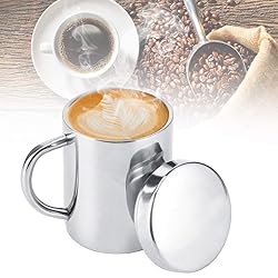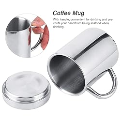Especificaciones: Condición: nuevo Tipo de artículo: taza de café Material: acero inoxidable Color: plateado Capacidad: 220 ml, 300 ml (opcional) Tamaño de 220 ml: aproximadamente 7x9,3 cm/2,8x3,7 pulgadas Tamaño de 300 ml: aproximadamente 7,3x10,5 cm/2,9x4,1 pulgadas Peso: Aproximadamente 167g ~ 205g/5,9 oz ~ 7,2 oz Lista de paquetes: 1x taza de café 1x tapa