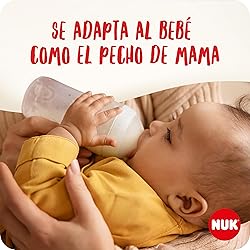 Las tetinas de biberón Perfect Match de NUK, gracias a su diseño adaptable, resultan idóneas para tu bebé. La tetina del biberón es excepcionalmente suave y elástica, como la piel de mami, para amoldarse cómodamente a los labios y al paladar de cualquier bebé. La forma, que se va estrechando suavemente, también facilita que el bebé se enganche de la manera adecuada: con la boca bien abierta y los labios rodeando la tetina. El innovador sistema de ventilación Anticólico ayuda a prevenir la perjudicial ingesta de aire, con tres tallas opcionales que regulan el flujo de leche de la mejor forma para tu bebé. *Estudio de mercado independiente, Alemania, 2023 **Estudio de mercado independiente, Alemania, 2023
