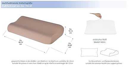 El algodón elástico garantiza que la funda de almohada se adapte perfectamente a la forma del cojín. Talla única universal para cojines de aprox. 35 x 60 cm hasta 47 x 75 cm y altura 10-13 cm. Apto para los cojines de salud más comunes como cojines de sándwich de 60 x 36 x 12/10 cm. Almohada de 67 x 40 x 11 cm, almohada de apoyo cervical de 70 x 36 x 11 cm, almohada de espuma viscoelástica de 60 x 36 x 12 cm o almohada ortopédica de 42 x 70 x 13 cm, etc. La superficie agradable al tacto de la funda es suave y agradable al tacto. La excelente calidad y el acabado impecable hacen que nuestra funda de almohada sea duradera y estable, el material suave no tiende a formar bolitas. La funda es muy fácil de limpiar, lavable a 60 °C, no necesita planchado y es apta para secadora. En Theonoi encontrarás productos especialmente bonitos del sector textil para el hogar. Nuestra gama de productos incluye ropa de cama, toallas de baño, toallas, mantas, fundas de almohada y muchos otros accesorios para niños y adultos en una variedad de diseños. Le garantizamos una calidad muy buena y controlada y un acabado de alta calidad. Tu satisfacción es lo más importante para nosotros. Si usted no está satisfecho con póngase en contacto con nosotros y díganos la razón. Nos encargamos de su pedido y le reembolsaremos el precio de compra – garantizado!