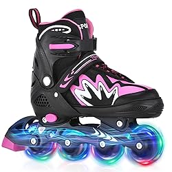 TOMSHOO Patines en Línea para Niña Niños, Patines 4 Tamaños Ajustables, LED Ruedas, Patines Línea para Niños, Niñas, Adolescentes Principiantes