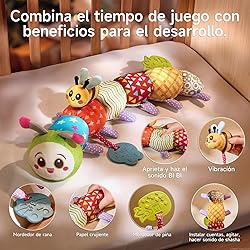 TUMAMA KIDS Juguetes para Bebé 0 3 6 Meses Juguete Oruga, Juguete Sensorial Montessori, Juguete para Bebé Niña Tummy Time, Juguete de Peluche con Sonajero,Anillo para la Dentición, Papel Arrugado