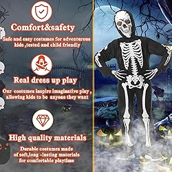 🎃🎃🎃Disfraz de Esqueleto Halloween Niño Niña🎃🎃🎃Este escalofriante disfraz de esqueleto es un clásico de Halloween.Ponte este disfraz de esqueleto que brilla en la oscuridad para niños y ponte en camino para recoger un sinfín de caramelos este Halloween.Durante el día parecerás un esqueleto normal, pero cuando caiga la noche tu traje brillará en la oscuridad.Incluso cuando oscurezca, ¡todo el mundo podrá ver a través de ti!Con este esqueleto de una pieza que brilla en la oscuridad serás todo un éxito este Halloween.