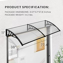 El toldo de VIVOHOME está hecho de un panel de policarbonato duradero y marcos y soportes de aluminio que son seguros y funcionales, con una apariencia elegante y moderna, lo que lo hace apropiado para ventanas, puertas, patios y terrazas para protegerse de la lluvia, el sol, la nieve y los dañinos rayos UV.