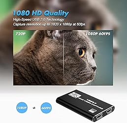 VIXLW capturadora de Video, capturadora Audio y Video USB 3.0, 1080P 60FPS/2K 30FPS Captura de Videojuegos, Tarjeta de Captura 4K HDMI Loop-out para Nintendo Switch/Xbox/PS5/Switch/cámara/PC/OBS