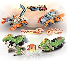 Dinosaurios que se transforman en vehículos con un solo ‘click’. El juguete identifica si se encuentra en modo dino o vehículo.