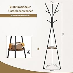WOLTU Perchero de Pie en Forma de Árbol Con 9 Ganchos y 1 Estante para Colgar Ropa, Abrigos, Bolsos - Tronco de Metal y Madera MDF, Negro