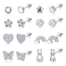 YADOCA 8 Pares Pendientes Niñas Hipoalergeniños para Mujer Acero Quirúrgico Arcoíris Pendientes de Rosca Pendientes de Aro Pendientes de Mariposa con Flor de Corazón de Perla