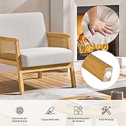 Yaheetech Sillón de Salón con Reposabrazos Estructura de Madera Sillón Relax de Ratán con Cojines Acolchados Sofá Individual para Salón Dormitorios Sala de Recepción Sala de Lectura