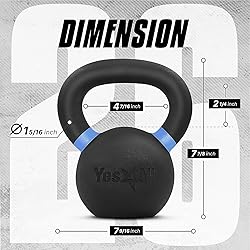 HIERRO FUNDIDO CON RECUBRIMIENTO EN POLVO DE ALTA CALIDAD Fabricada en hierro fundido macizo sin soldaduras, puntos débiles ni costuras. El revestimiento en polvo evita la corrosión y aumenta la durabilidad, proporcionando a cada kettlebell una sólida protección. Excelente para uso en interiores y exteriores, incluso en condiciones adversas. ANILLOS CODIFICADOS POR COLOR Los kettlebells de hierro fundido con recubrimiento en polvo Yes4All cuentan con un anillo codificado por colores en la base de cada asa, lo que facilita a los propietarios la identificación instantánea y la selección de los pesos adecuados. Cada kettlebell está etiquetada con las dos unidades de medida (KG y LB). ASA ANCHA DE FÁCIL AGARRE Y BASE PLANA El mango liso y ligeramente texturizado proporciona un agarre seguro para las repeticiones altas y elimina la necesidad de usar tiza. La base plana permite un almacenamiento vertical, ideal para Renegade Rows, Handstands, Mounted Pistol Squats y mucho más. TODA UNA VIDA DE BENEFICIOS PARA LA SALUD CON TUS KETTLEBELLS Mejora la fuerza, la resistencia y la coordinación. Entrenamiento cardiovascular de todo el cuerpo, quema de grasa y tonificación eficaz. Gran entrenamiento para los músculos estabilizadores, para la agilidad y la velocidad. UTILÍZALAS PARA MEJORAR TU FORMA FÍSICA Y PLANTEARTE RETOS Levantamiento turco Peso muerto individual Kettlebell Swing a dos manos Sentadilla con kettlebell y estocadas. DISPONIBLE EN DIFERENTES PESOS 4 kg, 6 kg, 8 kg, 12 kg, 16 kg, 20 kg, 24 kg, 32 kg. GARANTÍA 1 año de garantía y 30 días de devolución.