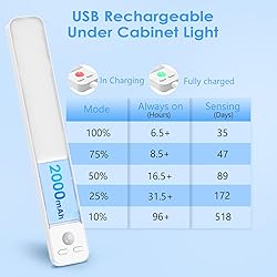 Ylatoial Luz LED con Sensor de Movimiento, 25CM Led Cocina Bajo Mueble con 6500K 2000mAh USB Recargable & Brillo Ajustable, Luces Led para Cocina, Armario, Garaje, Pasillo, Escalera-2 Piezas