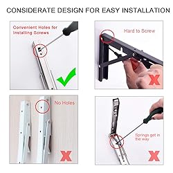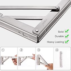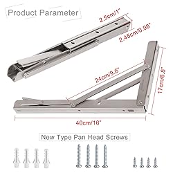 Siempre hay algunos espacios no utilizados que no se ajustan a tu mesa, estante, incluso silla, pero necesitas agregar algunos muebles de almacenamiento en estos lugares limitados. Y tal vez por eso vienes a nosotros. Soportes plegables YUMORE para estantes, un buen asistente para las mejoras de tu hogar, ayudando a construir un banco de trabajo adicional o estante de almacenamiento que se puede plegar hacia abajo hasta la pared para ahorrar mucho espacio. Características del producto: - Material de acero inoxidable de alta calidad, superficie de acabado cepillado y estructura triangular sólida, soporta hasta 150 kg. - Diseño plegable, el soporte se bloquea en un ángulo de 90°, cuando quieras plegar la mesa, simplemente presiona el brazo de liberación. - Ideal para muchos proyectos de bricolaje en casa, añadir una silla adicional en balcón, banco de trabajo en garaje, mostrador en remolque de barbacoa, etc. Especificaciones del producto: - Material: acero inoxidable. - Tamaño total: 400 x 175 mm. - Grosor del brazo de soporte: 1,5 mm. - Grosor de la varilla de soporte: 3,0 mm. - El paquete incluye: 2 soportes de estante plegables. 4 anclajes de expansión de plástico. 8 tornillos de rosca (1,5 mm y 5 mm de largo). Notas: 1. Contiene accesorios de tornillo, mantenlos alejados de niños, bebés y mascotas, evitando que se traguen accidentalmente. 2. No incluye tablero de madera, y para la mejor experiencia de uso, se recomienda que el ancho de la tabla de madera no exceda las 4 pulgadas del brazo del soporte. 3. El taladro y el destornillador son necesarios para la instalación, si faltan tornillos u otros accesorios, por favor ponte en contacto con nosotros para reemplazo.